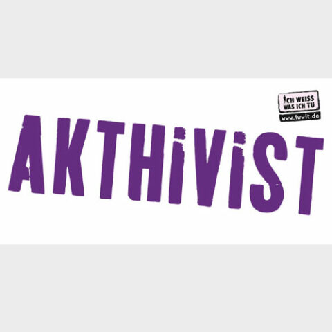 Stabfahne Akthivist. Schwule ins Ehrenamt! (Schriftzug Violett)