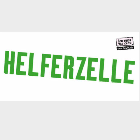 Stabfahne Helferzelle. Schwule ins Ehrenamt! (Schriftzug Grün)