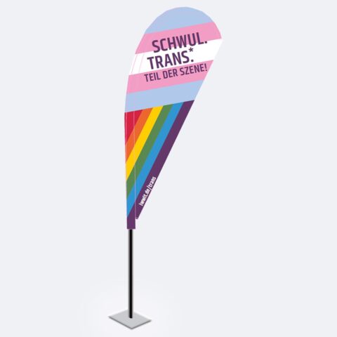 Beachflag: Schwul. Trans*. Teil der Szene.